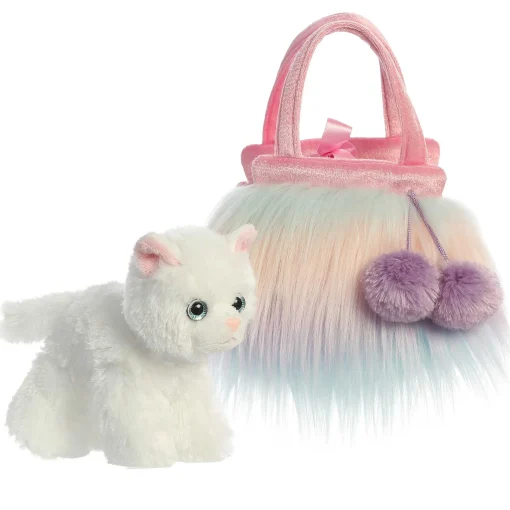 XFancy Pals From Aurora Features A Wide Variety Of Animals, Styles, And Colors That Are Sure To Please Anyone! This Adorable Furries Sunset Bag Is Made With Soft Pastel Mint, Blue, Peach, And Lavender Fur And Comes With A Cute White Kitten. Small And Compact, It Is Perfect For Carrying Around!