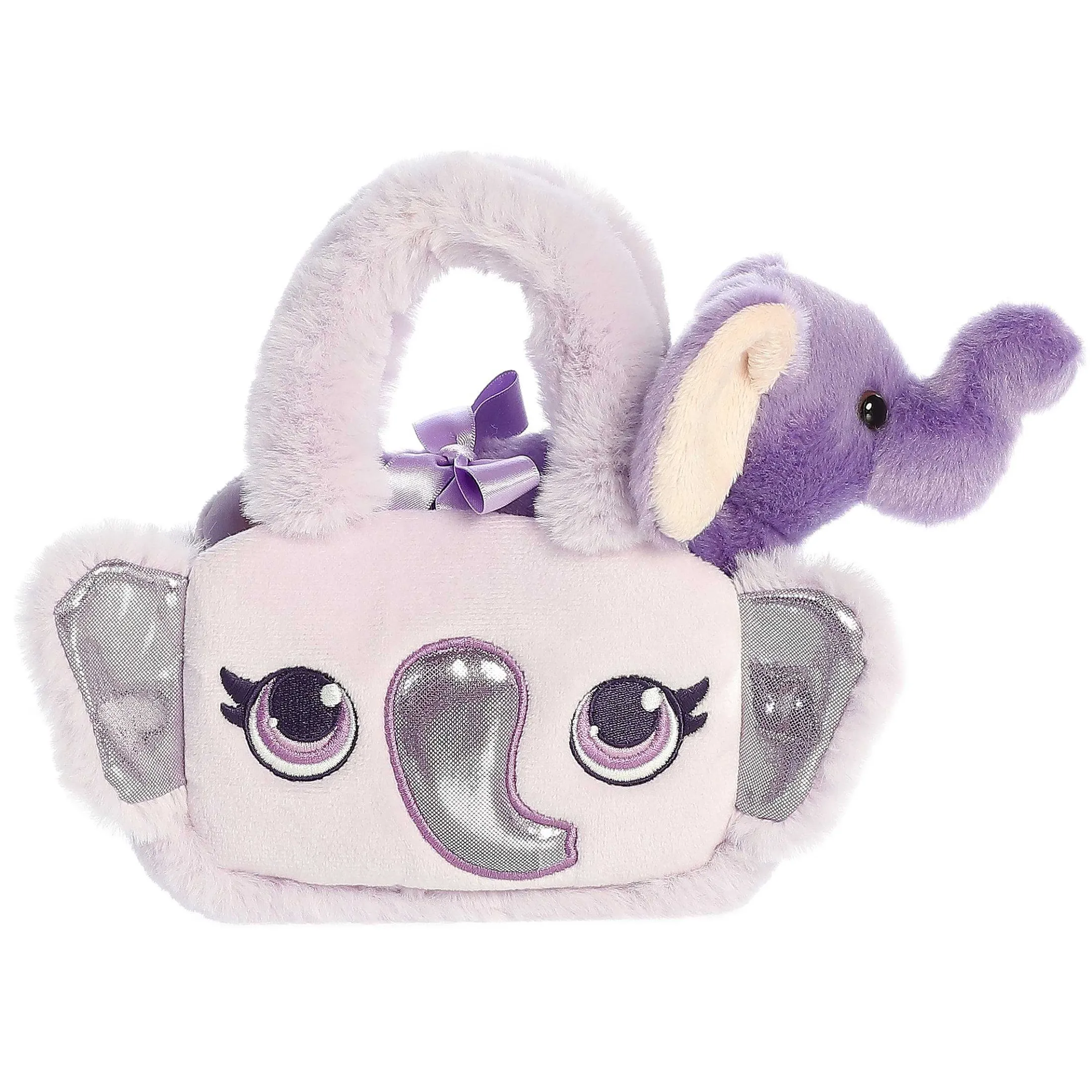 Step Into The Vibrant World Of Aurora’S Fancy Pals And Be Introduced To The Glitter Elephant. This Elephant Plush Carrier Is A Symphony Of Purples, With Its Dark Regal Hue Serving As A Canvas For A Playful Lighter Purple Design.