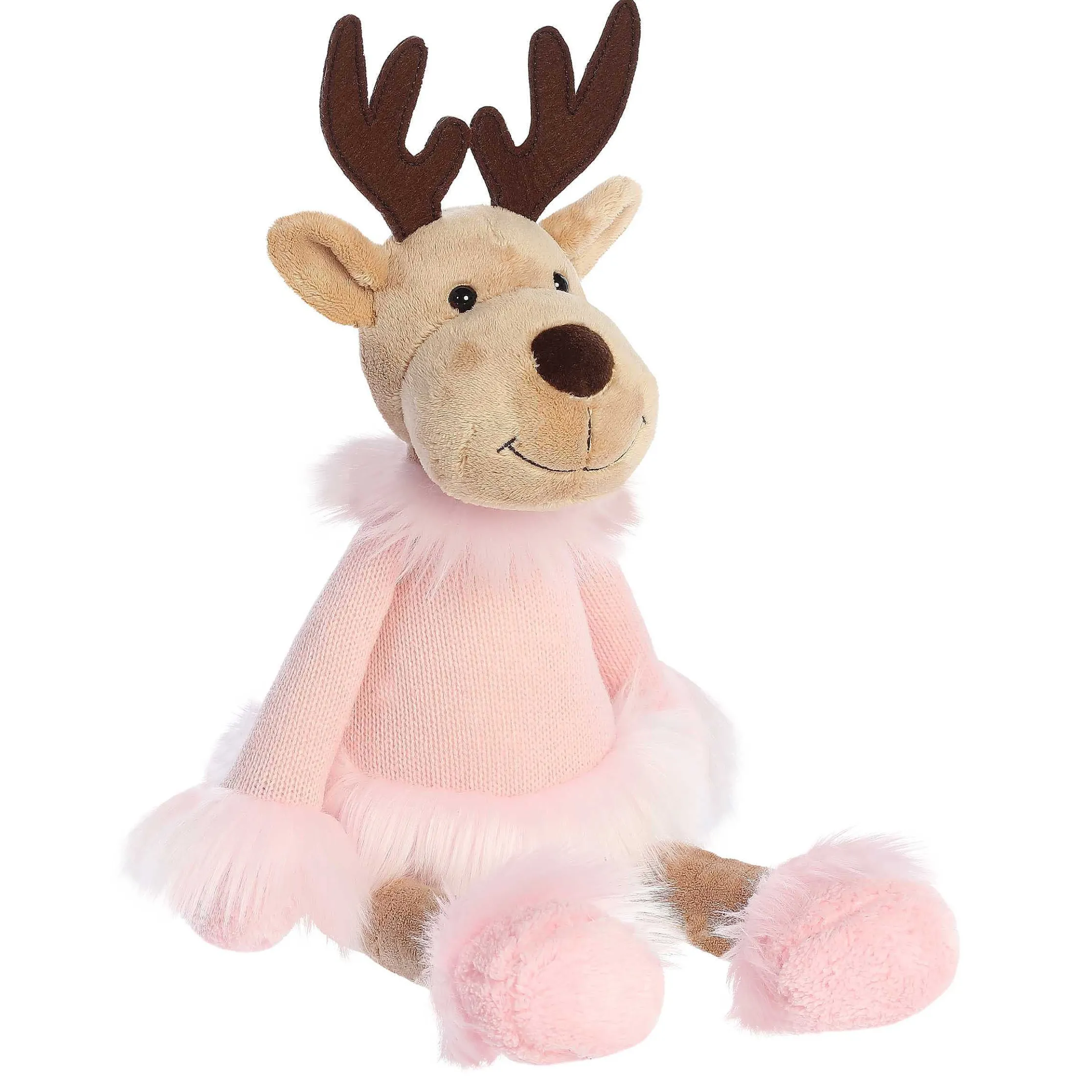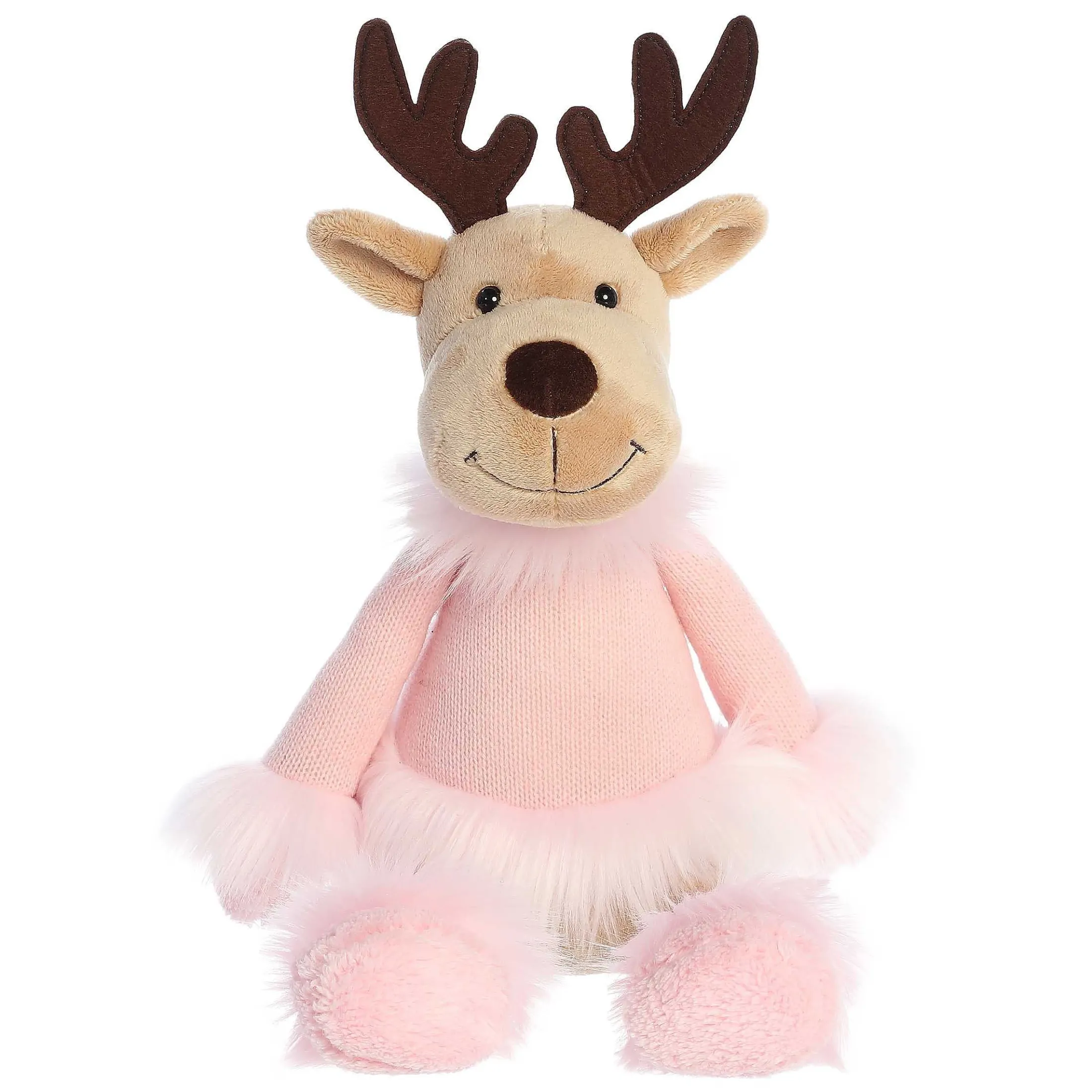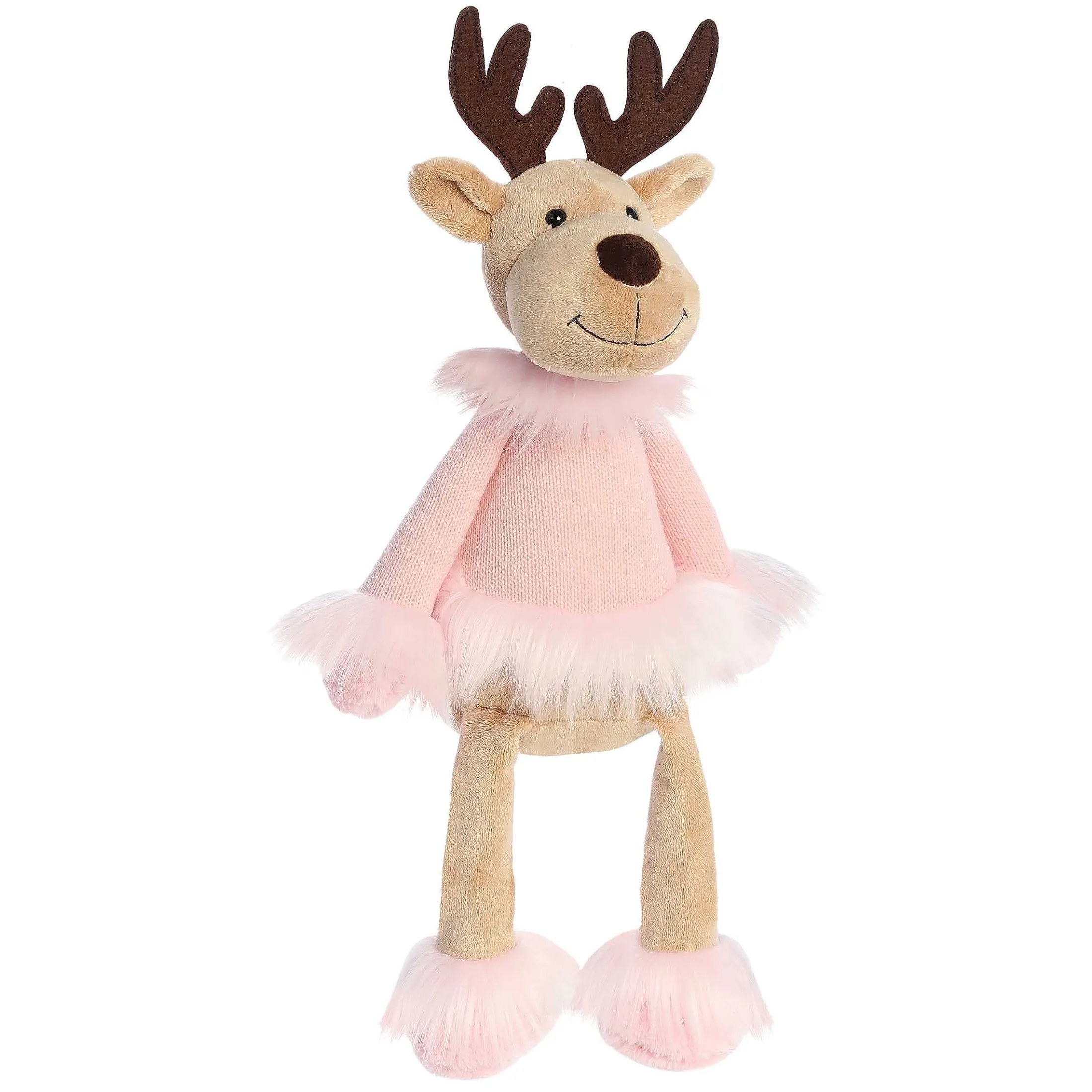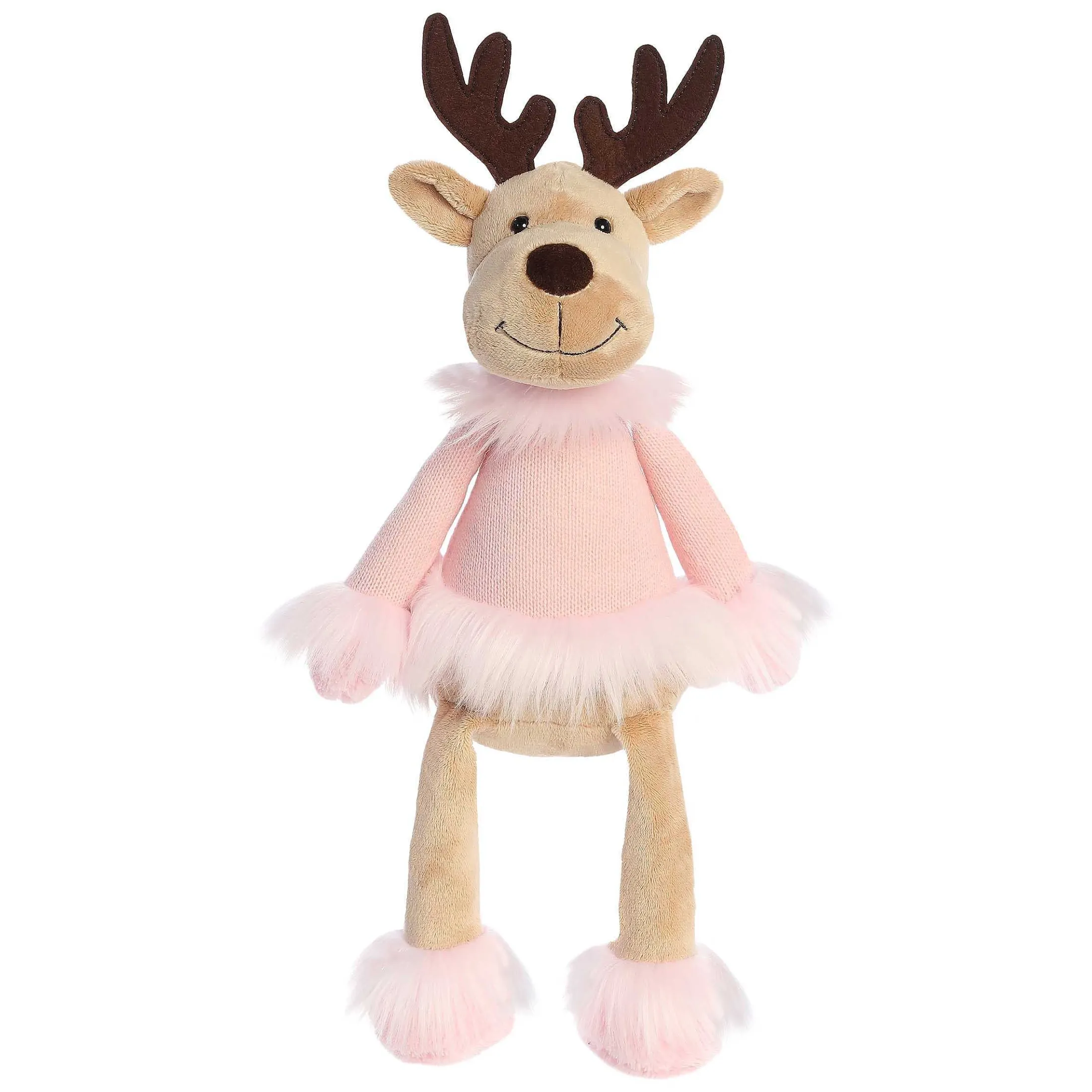 Welcome The Holiday Season By Cuddling Up To Dahlia The Cookie Doe From Our Winter Cozies Collection. This Light Brown Deer Features Huggable Long Arms And Legs, Dressed In All-Pink With Fuzzy Fur On The Cuffs And Colar, Adding To Its Sweetness And Holiday Cheer.