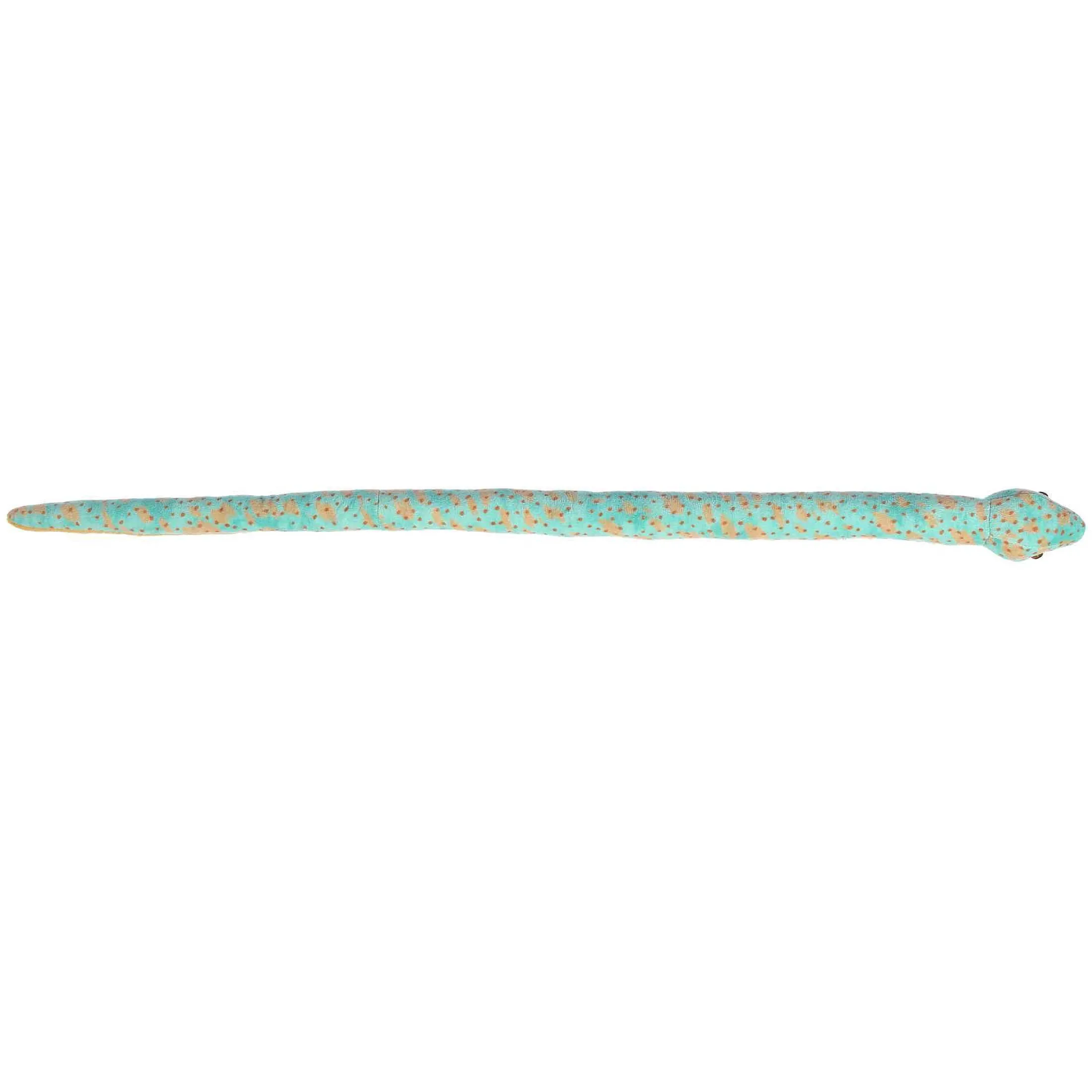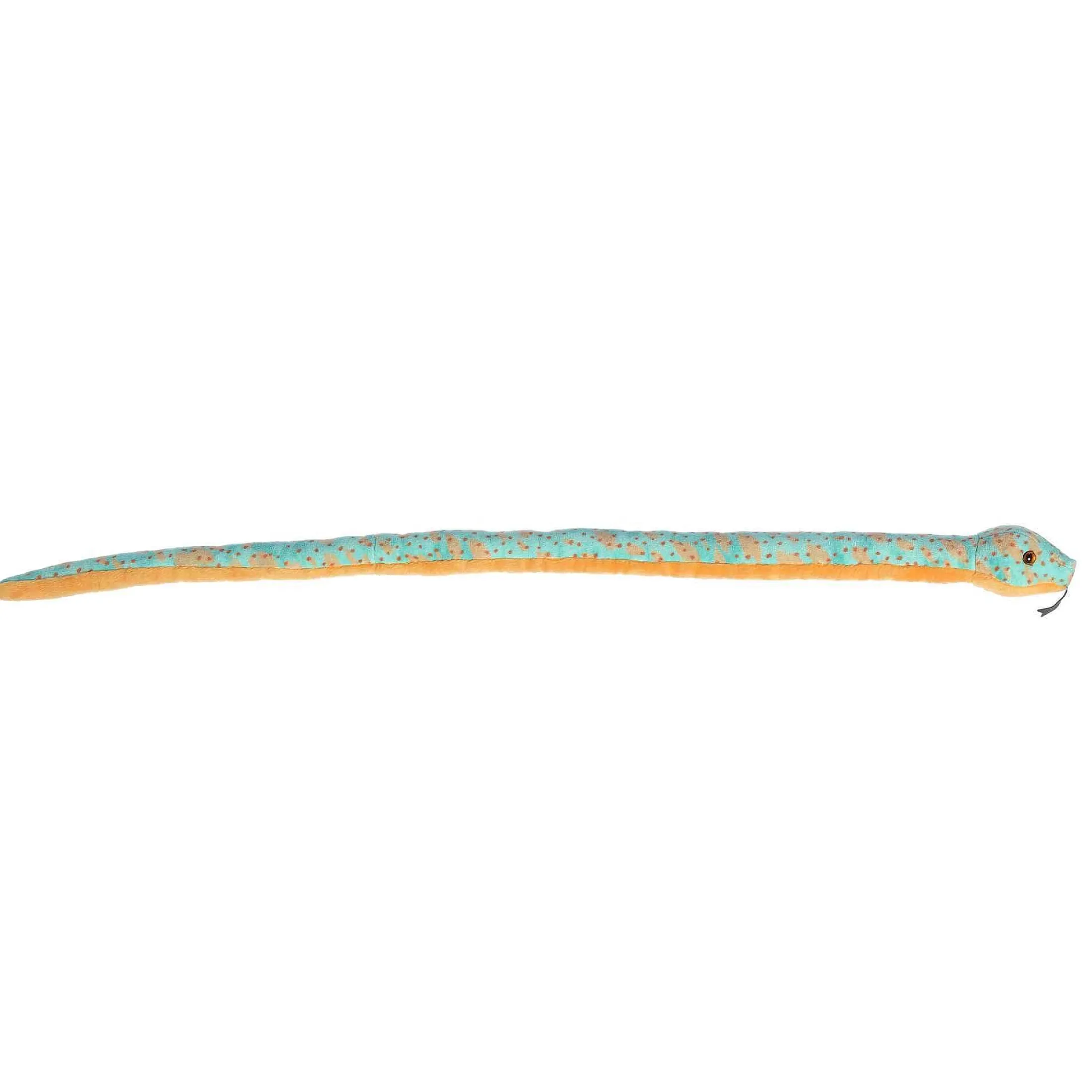 XThis Snake Plush Makes A Fine Choice For Those Who Are Looking For Something A Bit More Adventurous. This Speckled Snake Is Light Blue With Speckled Brow Spots All Throughout With An Orange Underside And Orange Eyes. A Unique Plush Animal Sure To Be Loved For Its Comedic Size And Soft Feel.
