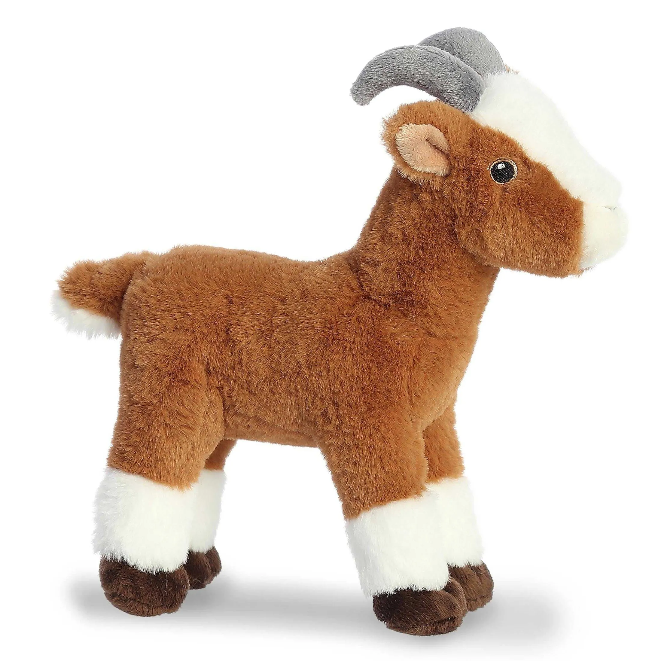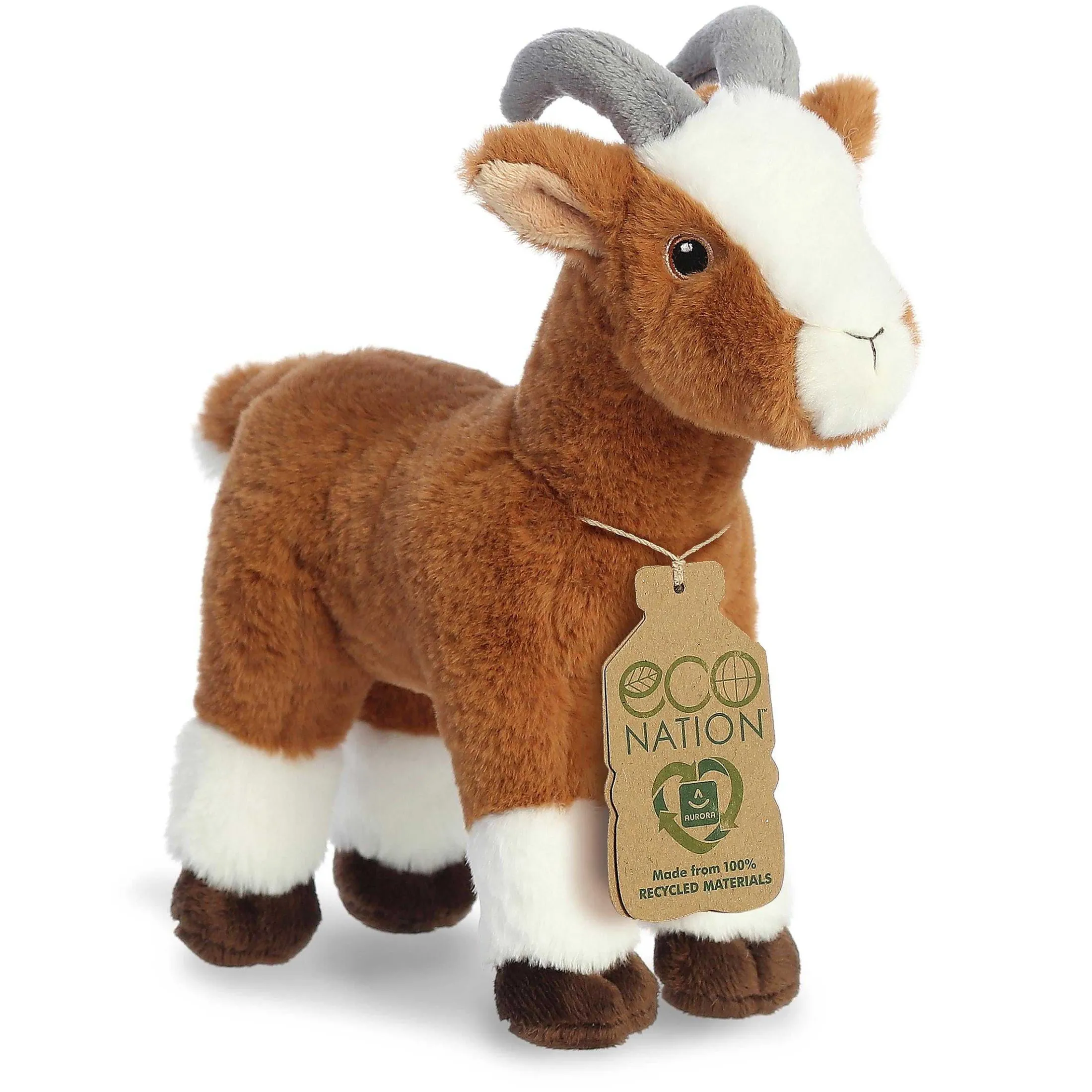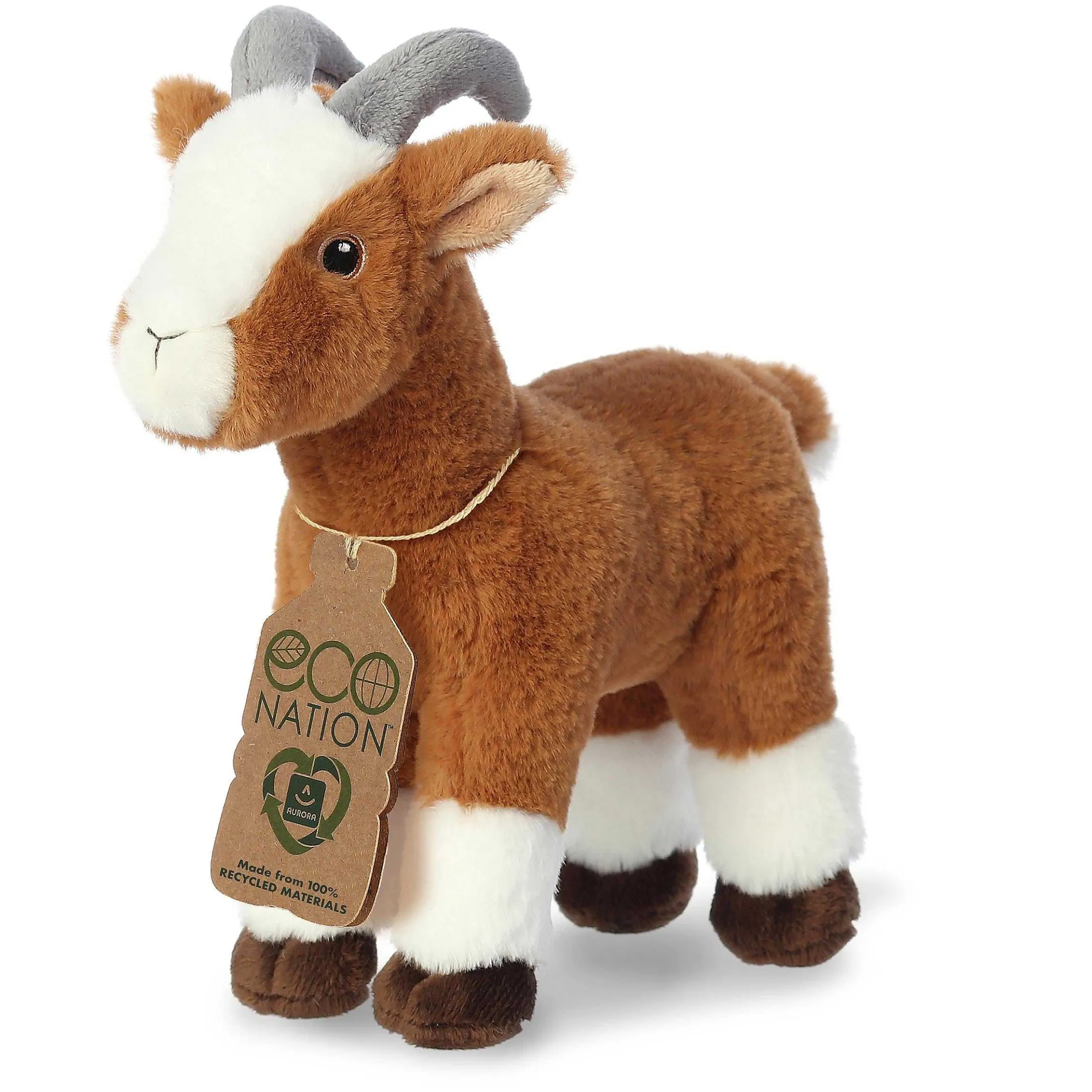 The Eco Nation Collection Presents Its Charming Goat Plush, A Tribute To The Playful And Intelligent Farmyard Favorite. With Its Rich Brown Coat, Distinctive White Markings, And Soft, Curved Horns, This Stuffed Animal Captures The Character Of A Real Goat. Aurora’S Commitment To Lifelike Detail And Eco-Friendly Materials Makes This Plush Not Only A Cuddly Companion But Also An Advocate For A Greener World.