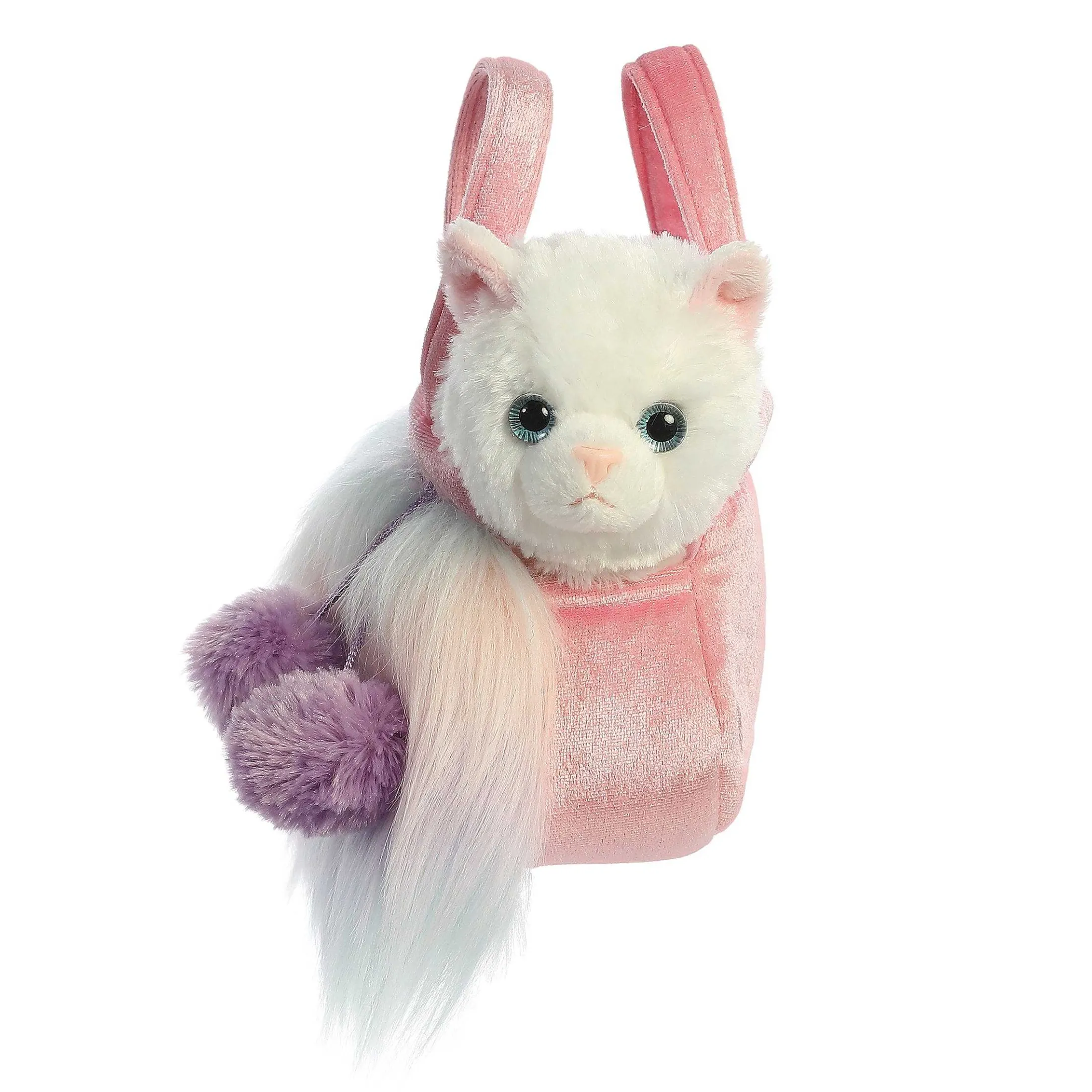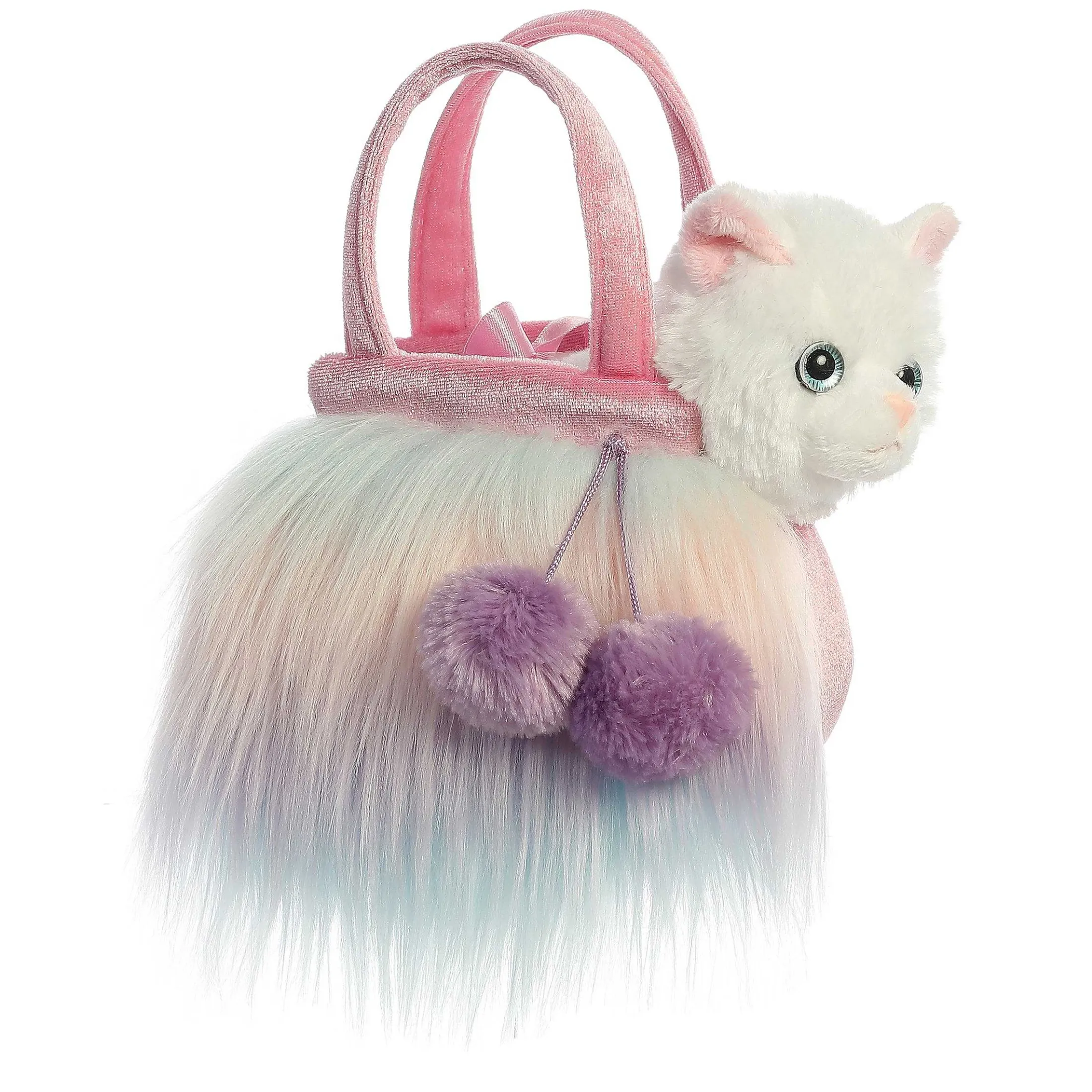 XFancy Pals From Aurora Features A Wide Variety Of Animals, Styles, And Colors That Are Sure To Please Anyone! This Adorable Furries Sunset Bag Is Made With Soft Pastel Mint, Blue, Peach, And Lavender Fur And Comes With A Cute White Kitten. Small And Compact, It Is Perfect For Carrying Around!
